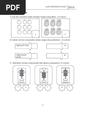 Soalan Ujian Matematik Kertas 1 Kssr Tahun 1 Pdf